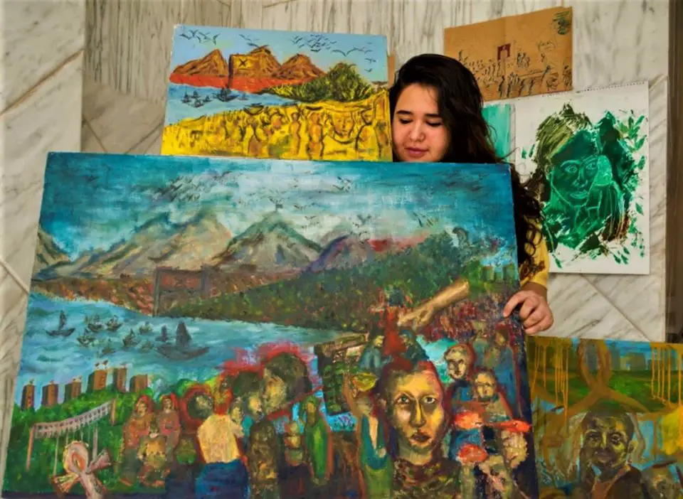 “In the Land of Struggle” is the title of the graduation project of Aya Ibrahim Qandil, student at the Faculty of Fine Arts. Her art project is about the conflict poor girls and women encounter around the world. “We often meet young girls living under harsh circumstances where the sudden absence of a father or a mother leaves them with the responsibility of raising up their younger siblings. There are many women who struggle to provide a living for their families. The circumstances differ, but the results are very similar.’’