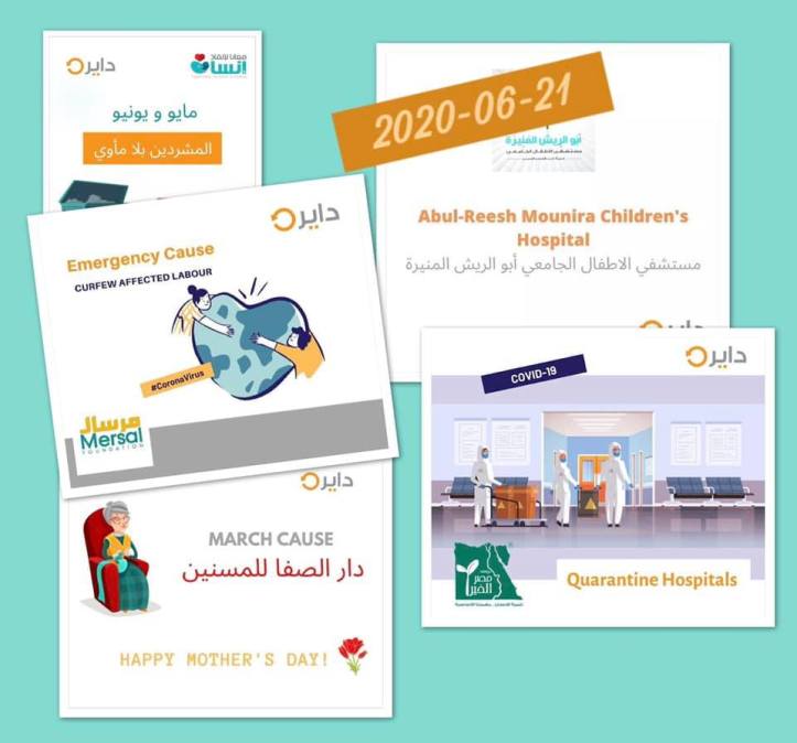 Since it was established, Dayra’s collected more than 220 quality branded clothing items; launched 5 successful campaigns that helped support the Children Cancer Hospital, Orphanage in old Cairo, Abu ElReesh Children Hospital, Mersal Foundation to support labor affected by Covid19 lockdown, ElSafa Senior Home, Misr ElKheir Foundation to support Quarantine Hospitals and Maana Lankaz Ensan Foundation for Homeless People.