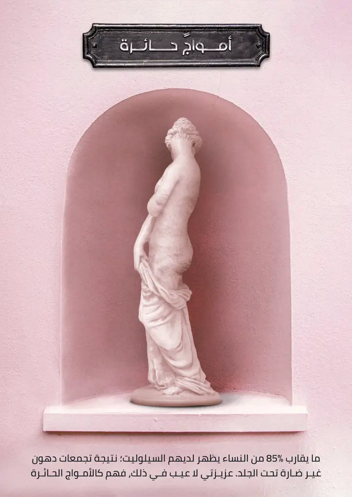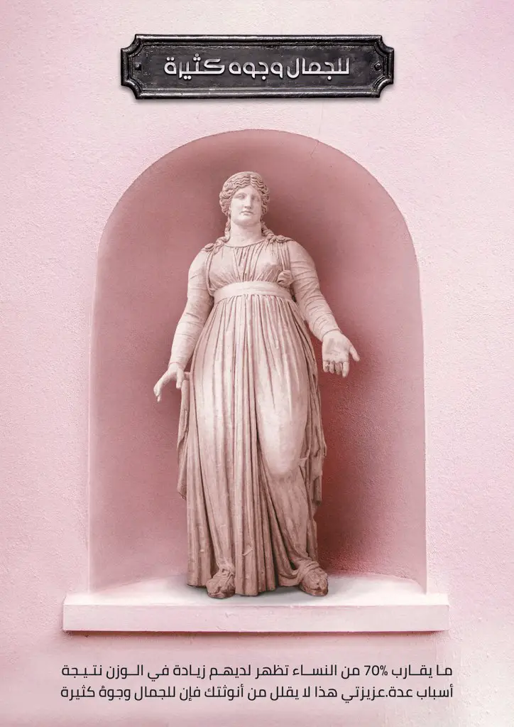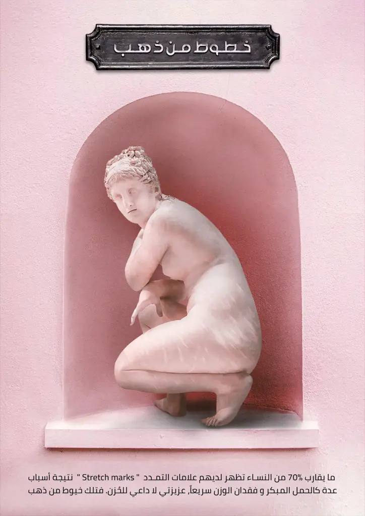 For the campaign images, they used statues of women and photshoped them to reflect some of the issue that trigger women insecurities about their bodies; acne, stretch marks, overweight, cellulite, cesarean scar and keratosis pilaris(chicken skin). “The bodies of most of the women around the world have similar issues and conditions, the so-called imperfections. There is no need to worry about it. You are a piece of art, no matter what,” the campaign concluded.