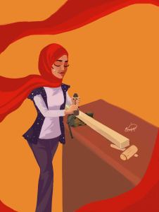 In August, the 22-year-old visual artist Sandra Moneer, whose practice comprises multiple artistic forms, started a virtual campaign to empower Egyptian women aesthetically and conceptually. Among the objectives according to which Sandra has created the “Egyptian Artists Empower Women” campaign, and being a firm believer herself in the power of conveying ideas through a visual form, Sandra wanted to avert the attention of other visual artists as well to recognize the impact they could leave upon the members of society by using creativity to help spread awareness over topics of paramount importance. In Sandra’s words, illustration is an inexhaustibly powerful visual language; through the graceful directions of lines and formations of shapes, a lot of substantial change could take place.“The whole thing could be summarized into creating scenes where an Egyptian woman would be practicing the role and the duty she has chosen to perform for the course of her life. Positive display of women practicing their daily activities is necessary and more importantly depiction of scenes where gender-equality is a main priority,” Sandra explains.