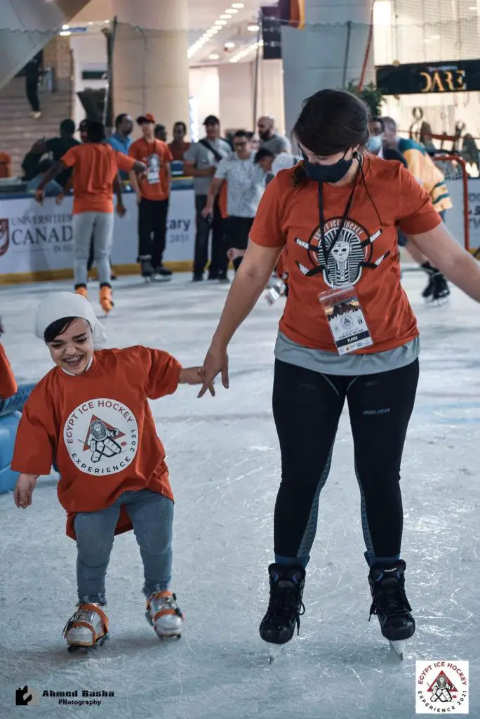 Egypt Ice Hockey team hosted their second Egypt Ice Hockey Cares (EIH Cares) event on Monday, October 25, 2021, at a small mall ice rink in Nasr City, Cairo with the help of Canada’s the Friendship League and several sponsors including Cerebrus, Egypt’s Rotary District 2451, and several other community & private sector sponsors.