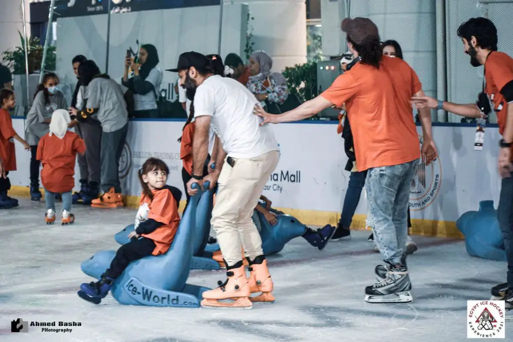 During this year’s EIH Cares event, over 45 girls and boys from Asmarat Heights Affordable Housing Community, Muwahadeen Orphanage and children of short stature were invited by Egypt Ice Hockey to participate in a fun-filled day of ice skating, races, and ice hockey lessons. The main theme of the event was, “Ice Hockey is a sport that can be enjoyed by all”.