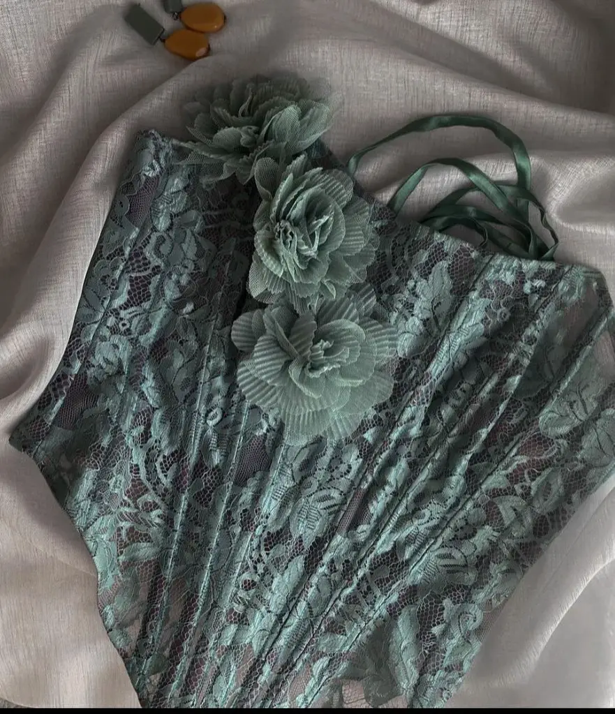 The lace l use in my designs is antique that I collect and repurpose, and is usually made of natural silk or cotton. In addition, l use offcuts/remnants or leftover stock form other designers.