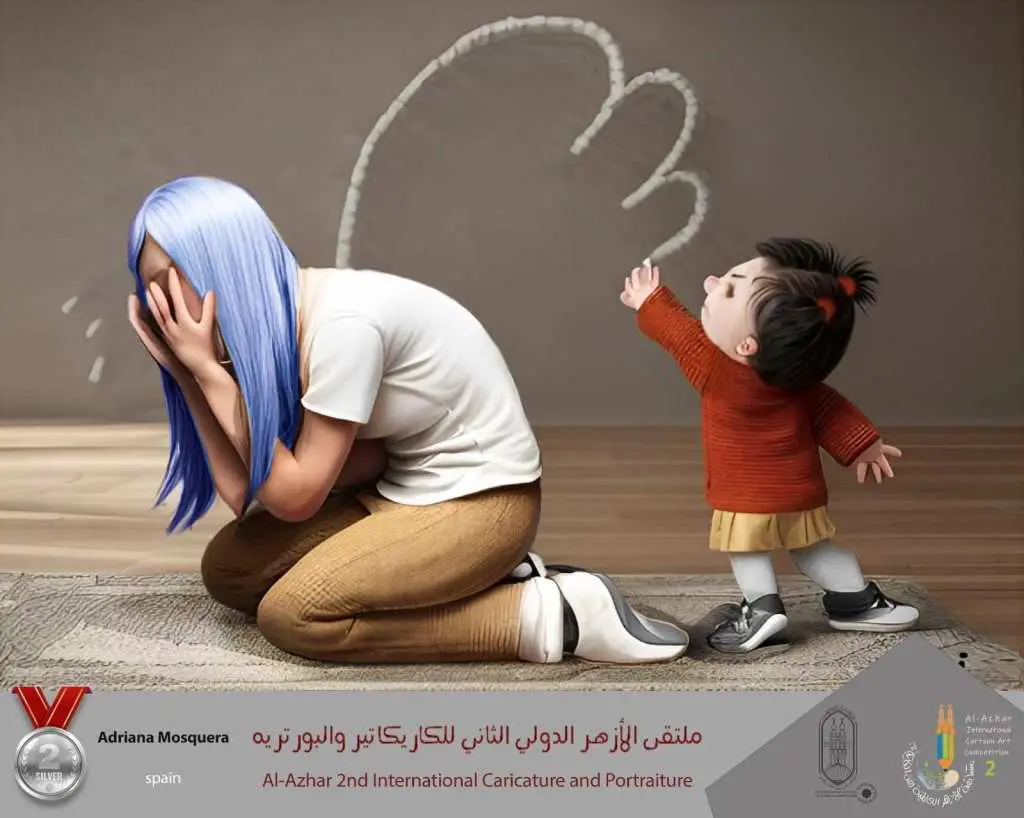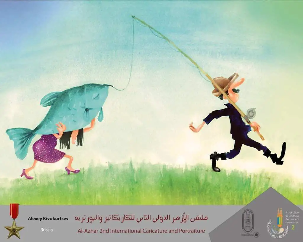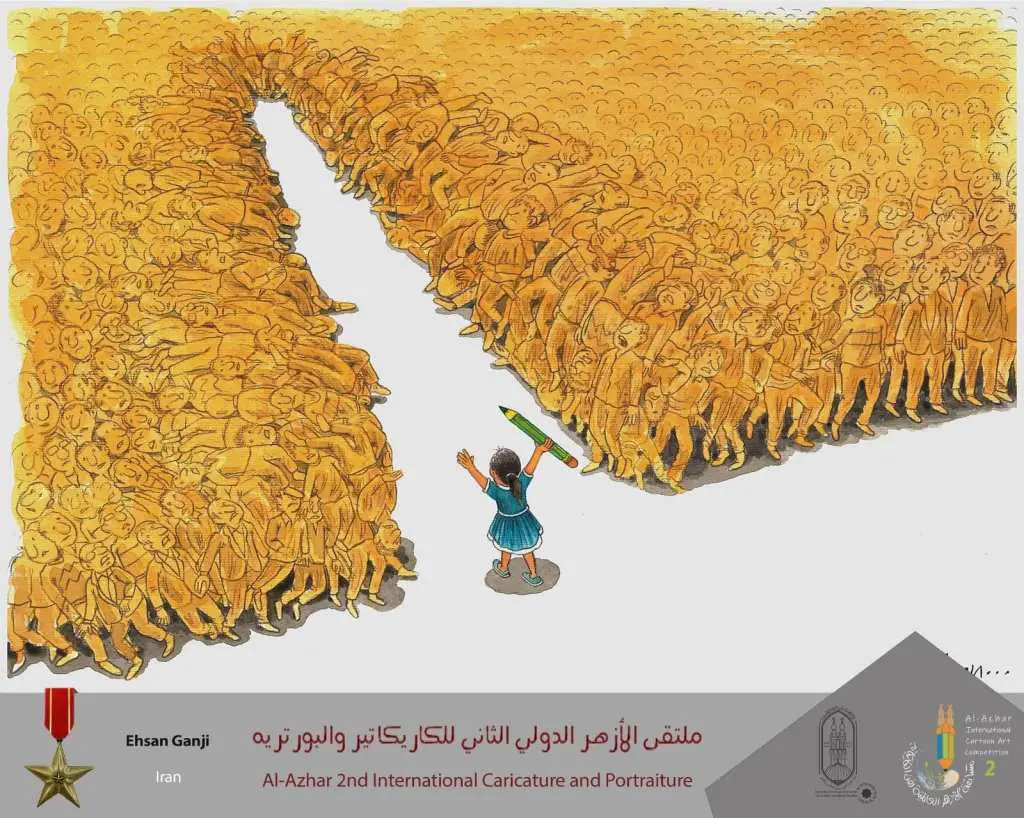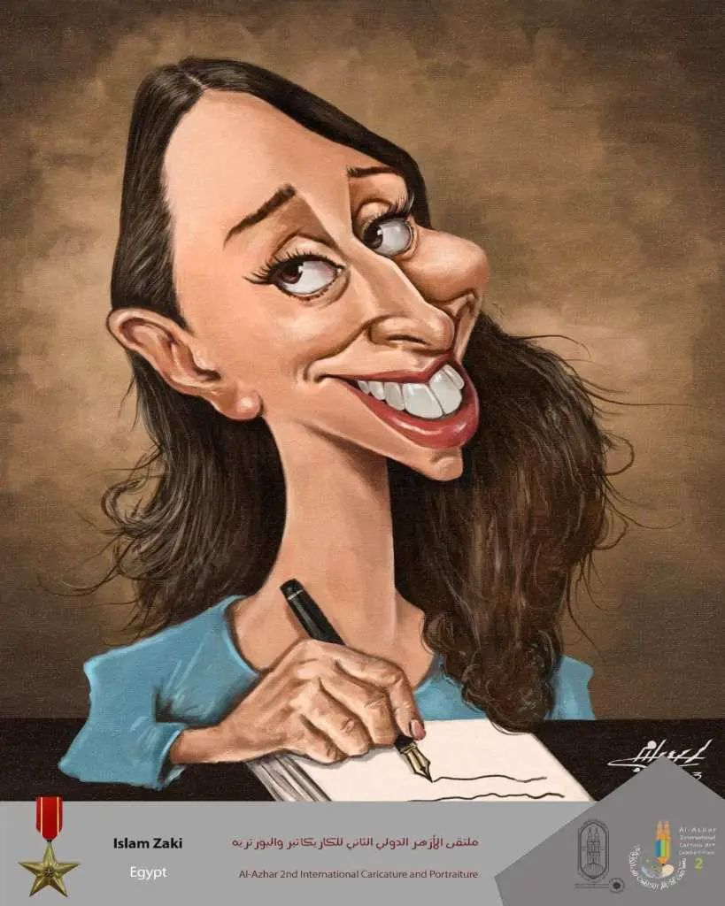 Dr. Nahla El-Saeedi, Advisor to the Grand Imam of Al-Azhar for International Students and Head of the Education Development Center for Al-Azhar International Students, noted that 287 artists from 46 countries submitted 458 works, comprising 307 in the cartoon section and 151 in the portrait section.