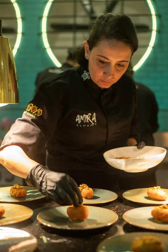 Amira Elhamy didn’t initially envision a career in the culinary world. She followed a traditional path, aiming for a corporate career. However, after getting married, she discovered a passion for cooking, sparked by her persistence in mastering classic dishes. Experimenting with cookbooks and ingredients, her love for food blossomed. Her journey into hospitality began with hosting friends for meals and experiencing the joy of serving others.